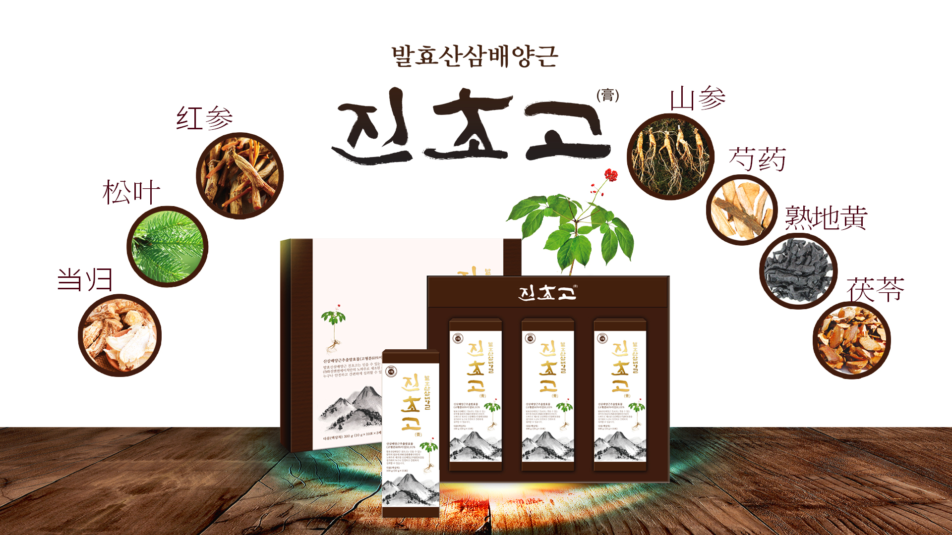 “发酵山参培养根 真初膏”,严选熟地黄,当归,茯苓,芍药,松叶等韩方药材提取浓缩液,及红参浓缩液,蜂蜜等,添加(株)和辰N&H专利技术生产的发酵山参培养提取物研制而成。老少皆宜,方便服用