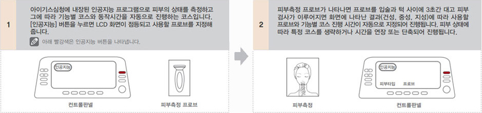 피부측정 결과에 따라 각 기능별 프로그램이 자동으로 진행되어 관리하는 모드입니다.